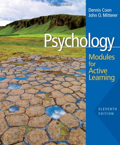 PSYCHOLOGY: MODULES FOR ACTIVE LEARNING, 11e, the best-selling text by renowned author and educator Dennis Coon and John O. Mitterer, combines the highly effective SQ4R (Survey, Question, Read, Recite, Reflect, Review) active learning system, an engaging style and appealing visuals, and detailed coverage of core topics and cutting-edge research in one remarkable, comprehensive text. Fully updated and reorganized, this edition includes new and revised content, extensive special features, and learning tools integrated throughout the text. While the text provides a thorough introd