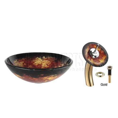 Kraus Boulder Opal Glass Vessel Sink and Waterfall Faucet - Gold